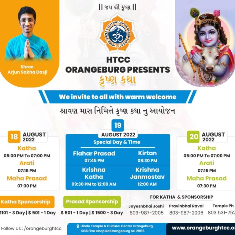 HTCC Orangeburg Sc દ્વારા તમામ ને રક્ષાબંધન ની શુભકામનાઓ. If any enquiry and sponsorship Contact:Jayeshbhai: 803-987-2005Pravinbhai: 803-987-2006Temple Ph: 803-531-7522