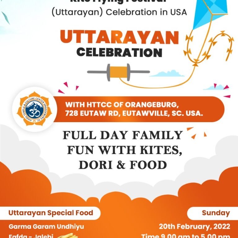 ઉત્તરાયણ ની હર્ષભેર ઉજવણી કરી. સાથે સાથે ગરમા ગરમ ફાફડા જલેબી અને ઊંધિયું ની જ્યાફત માણી. If any enquiry and sponsorship Contact:Jayeshbhai: 803-987-2005Pravinbhai: 803-987-2006Temple Ph: 803-531-7522